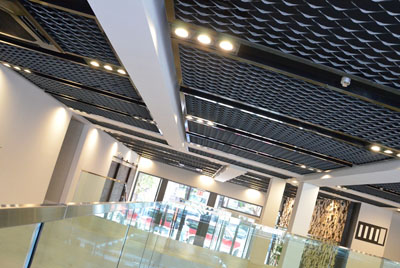 Expanded Metal Ceiling is kind of application for expanded metal mesh. It combine functionality and outstanding appearance. An almost inexhaustible range of mesh designs crated a unique visual every time: diamond -shaped or square mesh, solid or filigree, open or closed.